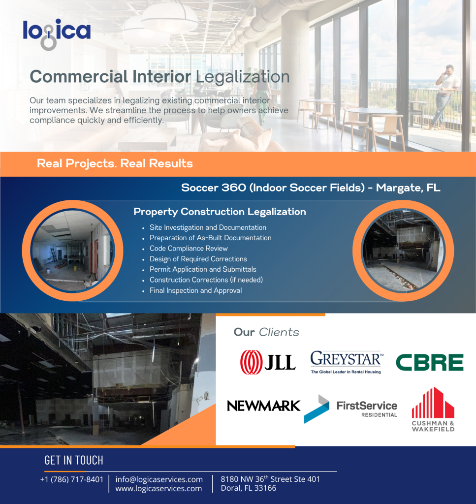 Margate, FL (3/25/2026) – Logica was awarded with the project of Soccer 360 fields in Margate FL. This projects contains a full construction legalization process and rehabilitation of its amenities.